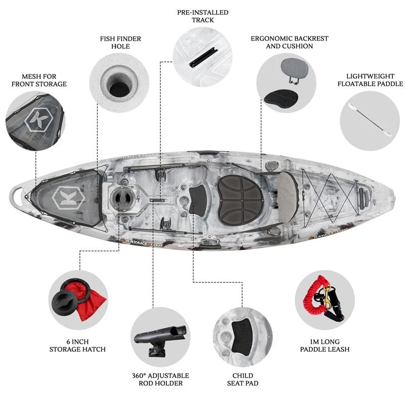- Six scupper holes with drain plugs around the body of Kayak for easy drainage if needed.