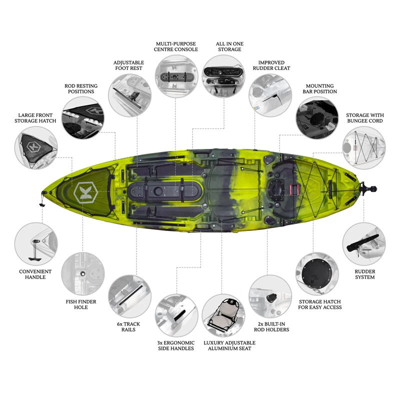 - 4x Preinstalled Track Rails for installing GoPro, Fish Finder, Rod Holders etc.
