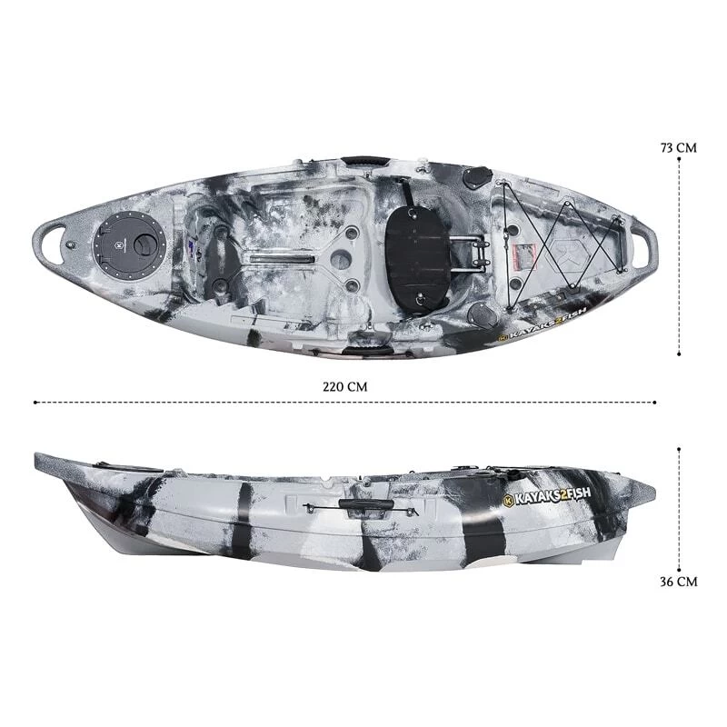 - Aquadynamic shape with a V-shaped hull underneath, both in front and back, to ensure kayak tracks straight and move faster with less effort.