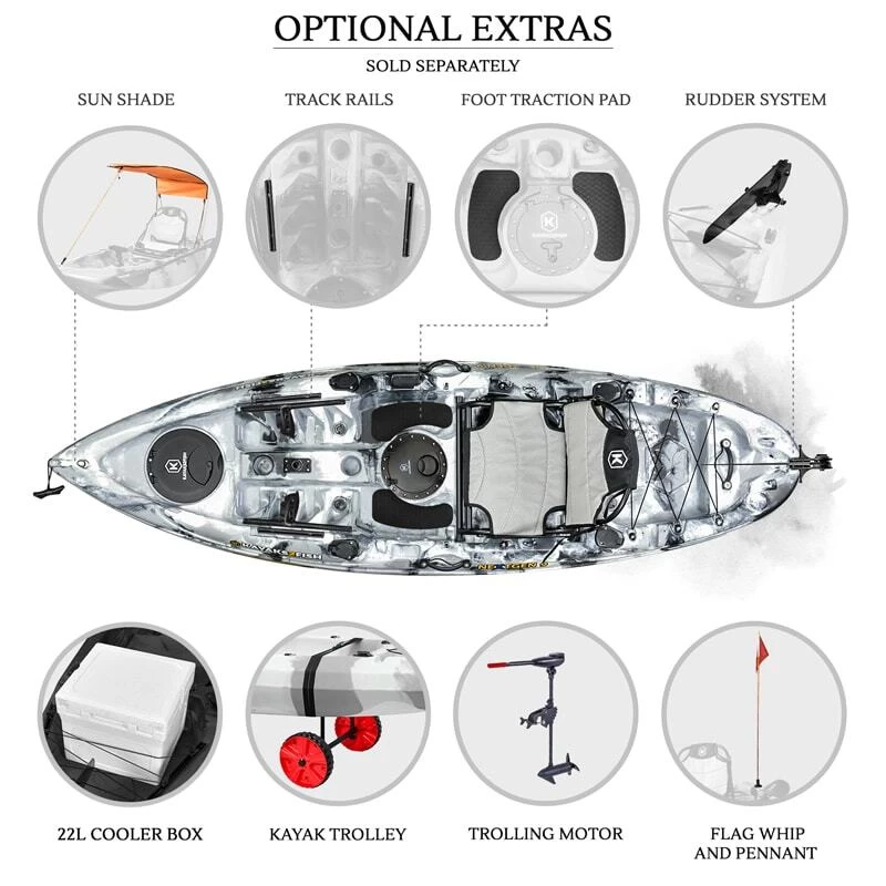 - Option to install Tracks along the length of Kayak, useful for attaching various accessories such as GoPro, Fish Finder etc.