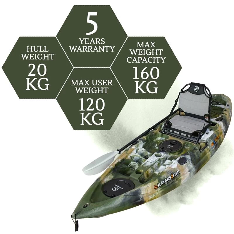 - Option to install Tracks along the length of Kayak, useful for attaching various accessories such as GoPro, Fish Finder etc.